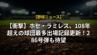 【衝撃】ホセ・ラミレス、108年超えの球団最多出場記録更新!286号弾も待望ラミレス記録更新のニュース概要 ホセ・ラミレス選手が、クリーブランド・ガーディアンズの球団最多出場試合記録を更新しました。 現地時間月...