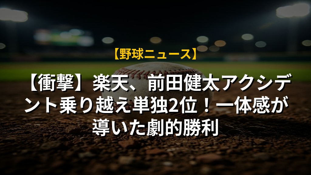 楽天が日本ハム戦を3-0で制し、パ・リーグ単独2位に浮上しました。先発・前田健太投手の緊急降板というアクシデントがありましたが、チーム一丸で乗り越えた勝利です。