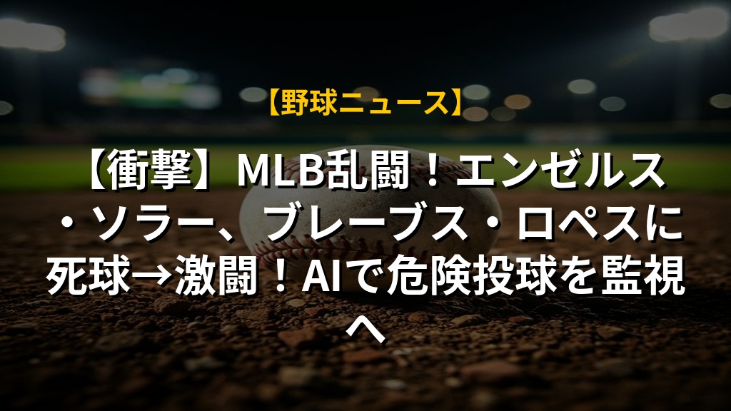 【衝撃】ロペスvsソラー乱闘!危険な投球が発端、MLBでまさかの殴り合い!MLB乱闘のニュース概要 アトランタ・ブレーブスのレイナルド・ロペス投手とロサンゼルス・エンゼルスのホルヘ・ソラー指名打者が、火曜日夜の...