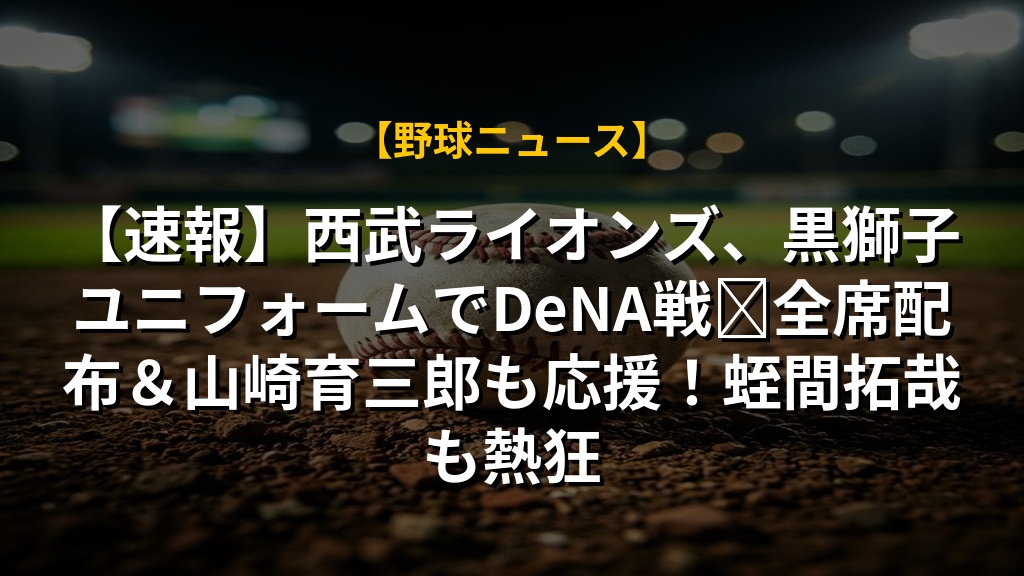 【速報】西武ライオンズ、黒獅子ユニフォームでDeNA戦🔥全席配布&山崎育三郎も応援!蛭間拓哉も熱狂