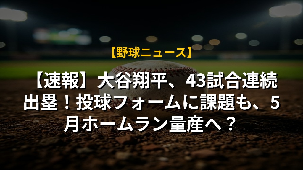 【速報】大谷翔平、43試合連続出塁!投球フォームに課題も、5月ホームラン量産へ?