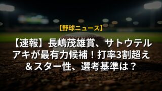 【速報】長嶋茂雄賞、サトウテルアキが最有力候補!打率3割超え&スター性、選考基準は?長嶋茂雄賞のニュース概要 プロ野球界は今季、長嶋茂雄さんの名を冠した「長嶋茂雄賞」を新設しました。 この賞は、プレーだけでなく人々を魅了...