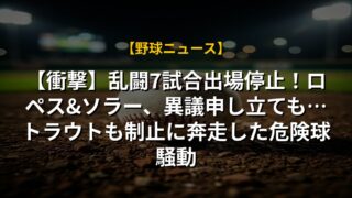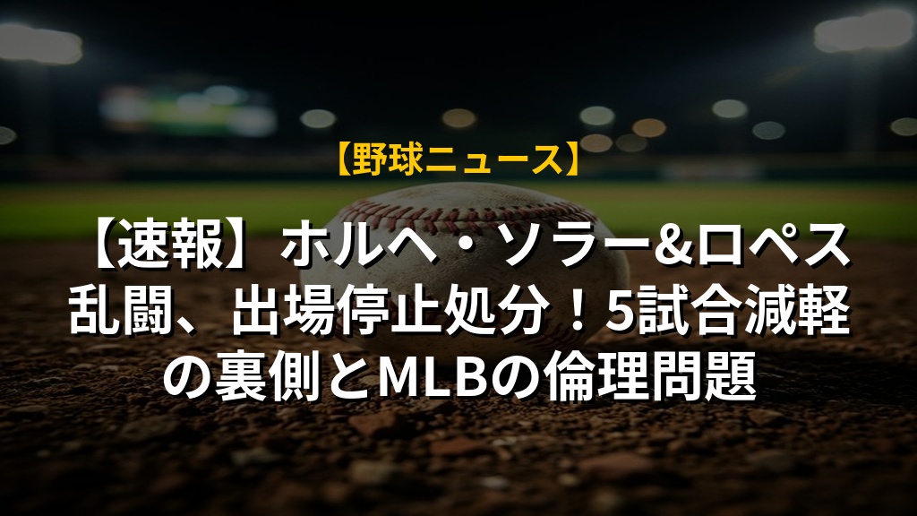 【速報】ホルヘ・ソラー&ロペス乱闘、出場停止処分!5試合減軽の裏側とMLBの倫理問題
