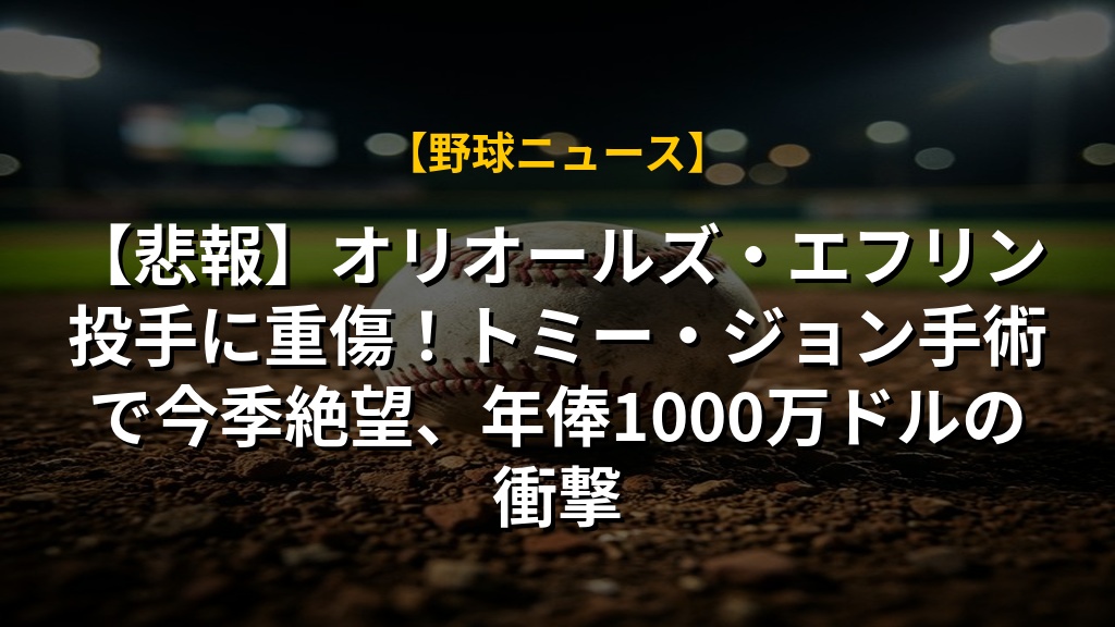 【悲報】オリオールズ・エフリン投手に重傷!トミー・ジョン手術で今季絶望、年俸1000万ドルの衝撃の注目ポイントまとめ