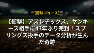 【衝撃】アスレチックス、ヤンキース相手に47年ぶり完封!スプリングス投手のデータ分析が生んだ奇跡アスレチックス完封勝利のニュース概要 アスレチックスがヤンキースとの試合で、1安打完封勝利を収めました。 この結果は、アスレチックスがヤ...