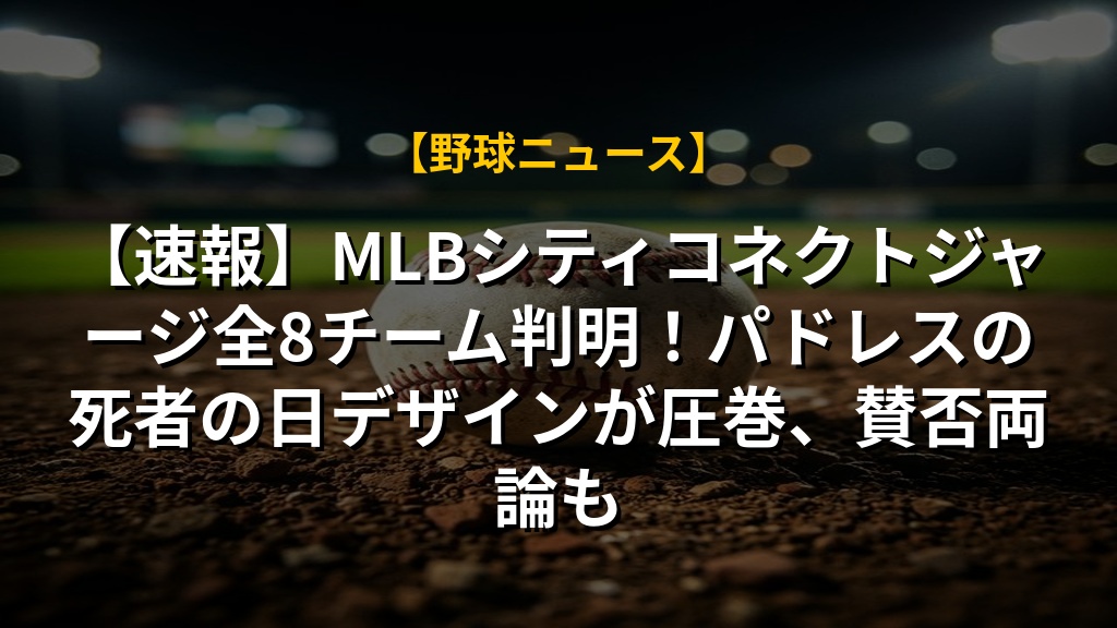 【速報】MLBシティコネクトジャージ全8チーム判明!パドレスの死者の日デザインが圧巻、賛否両論もの注目ポイントまとめ
