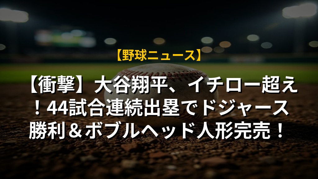 【衝撃】大谷翔平、イチロー超え!44試合連続出塁でドジャース勝利&ボブルヘッド人形完売!の注目ポイントまとめ
