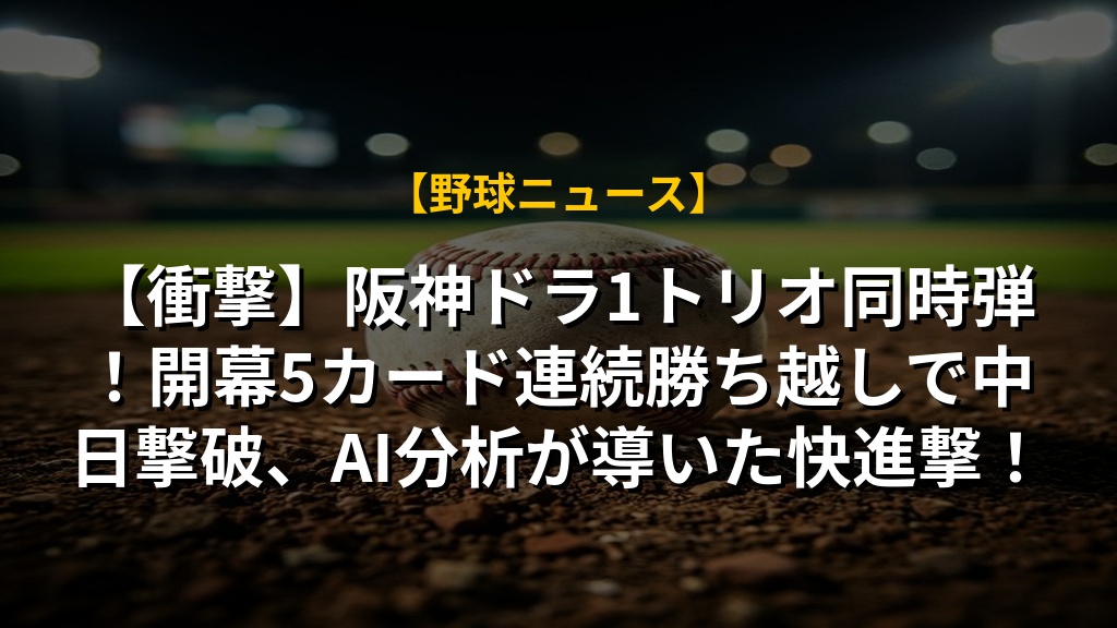 【衝撃】阪神ドラ1トリオ同時弾!開幕5カード連続勝ち越しで中日撃破、AI分析が導いた快進撃!