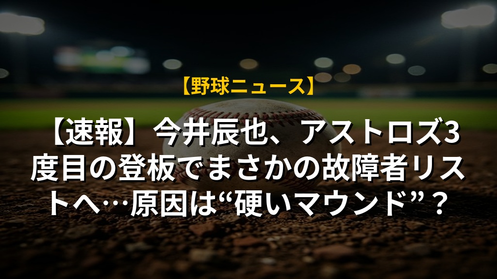 【速報】今井辰也、アストロズ3度目の登板でまさかの故障者リストへ…原因は“硬いマウンド”?