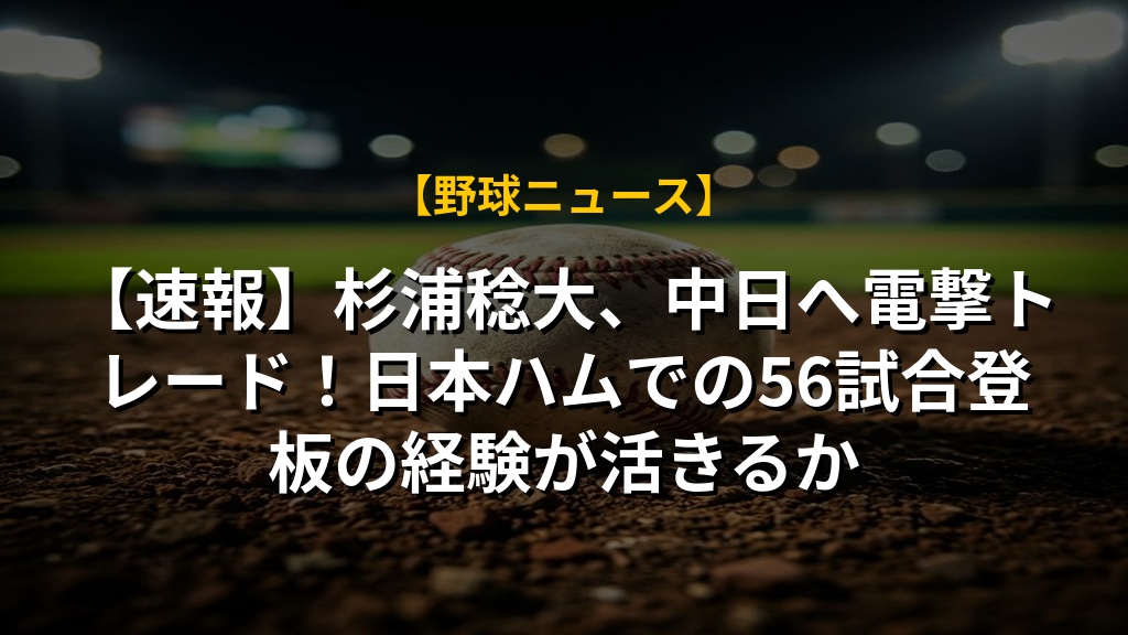 【速報】杉浦稔大、中日へ電撃トレード!日本ハムでの56試合登板の経験が活きるかの注目ポイントまとめ