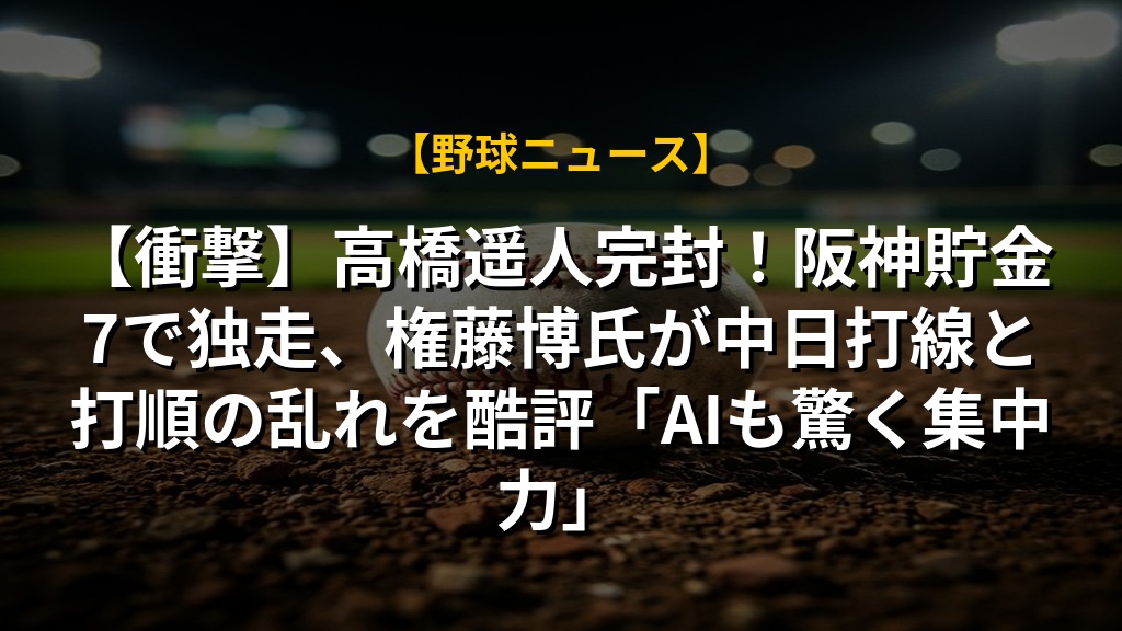 【衝撃】高橋遥人完封!阪神貯金7で独走、権藤博氏が中日打線と打順の乱れを酷評「AIも驚く集中力」の注目ポイントまとめ