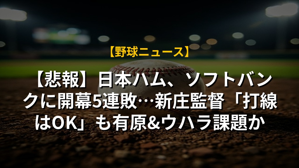 日本ハムはソフトバンクに開幕から5連敗し、カード負け越しとなりました。新庄監督は相手の積極的な攻めを認めつつ、打線の伸び悩みと有原投手の投球テンポ改善を示唆しました。