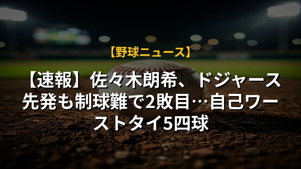 【速報】佐々木朗希、ドジャース先発も制球難で2敗目…自己ワーストタイ5四球