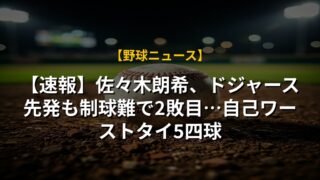 【衝撃】ササキ朗希、ドジャース2敗目!フォークは◎も…球数と四球の“根本原因”とは?