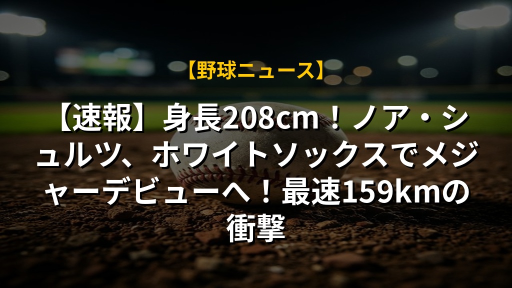【速報】身長208cm!ノア・シュルツ、ホワイトソックスでメジャーデビューへ!最速159kmの衝撃
