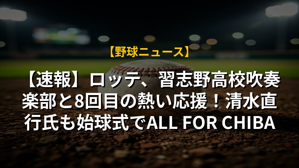 ロッテマリーンズが、地域振興活動「ALL FOR CHIBA」の一環で習志野高校吹奏楽部を楽天戦に招待するとのことです。8回目となる今回は、試合前演奏や応援団との合同応援で会場を盛り上げ、OBの清水直行氏も始球式に登場します。