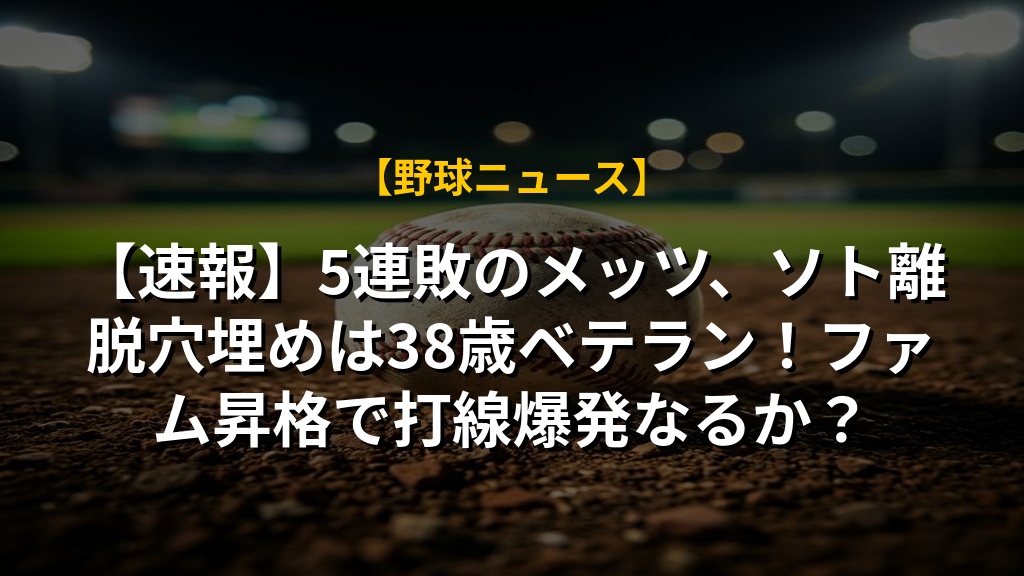 【速報】5連敗のメッツ、ソト離脱穴埋めは38歳ベテラン!ファム昇格で打線爆発なるか?