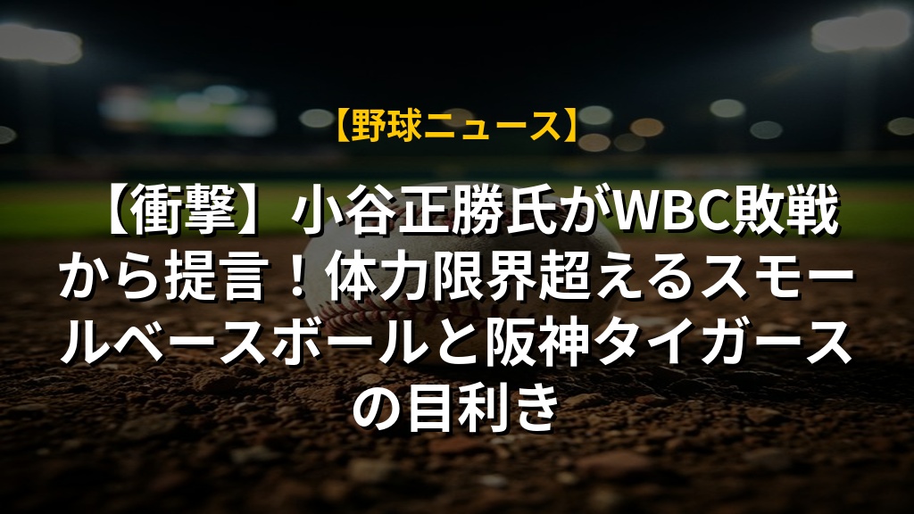 【衝撃】小谷正勝氏がWBC敗戦から提言!体力限界超えるスモールベースボールと阪神タイガースの目利き