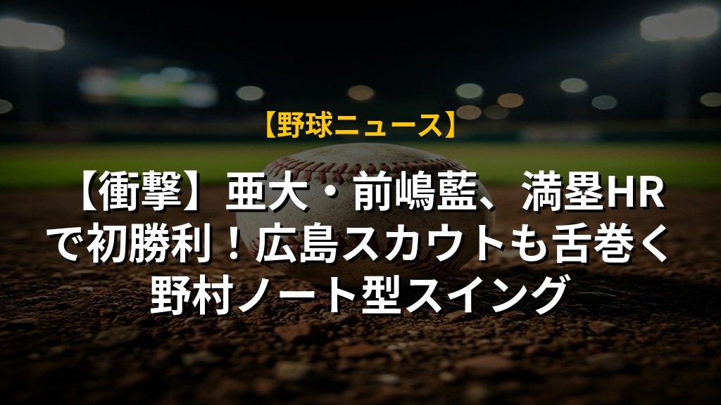 - 亜大・前嶋藍選手が、東洋大戦で大学初の満塁ホームランを放ち、チームに今季初勝利をもたらした。
