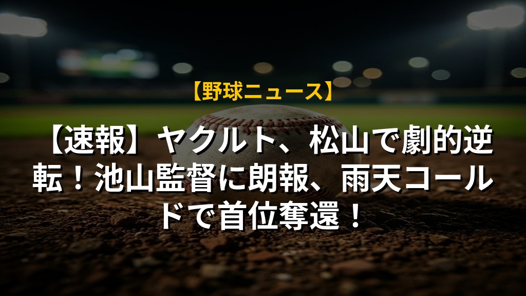 【速報】ヤクルト、松山で劇的逆転!池山監督に朗報、雨天コールドで首位奪還!