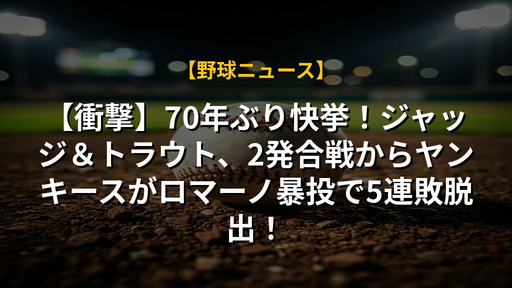 【衝撃】70年ぶり快挙!ジャッジ&トラウト、2発合戦からヤンキースがロマーノ暴投で5連敗脱出!の注目ポイントまとめ