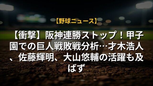 この試合は、単なる激戦を超えた、野球の未来を暗示する出来事だったと言えるでしょう。