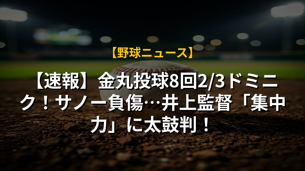 【速報】金丸投球8回2/3ドミニク!サノー負傷…井上監督「集中力」に太鼓判!