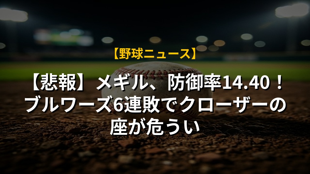 メギルは昨シーズン、オールスターにも選出されましたが、火曜日のトロント・ブルージェイズ戦では、9回に3点を失い、観客からブーイングを受けました。この結果、メギルの防御率は14.40となっています。