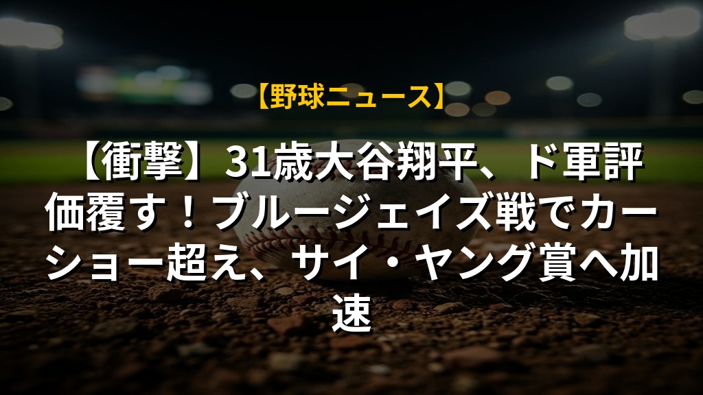 【衝撃】31歳大谷翔平、ド軍評価覆す!ブルージェイズ戦でカーショー超え、サイ・ヤング賞へ加速の注目ポイントまとめ