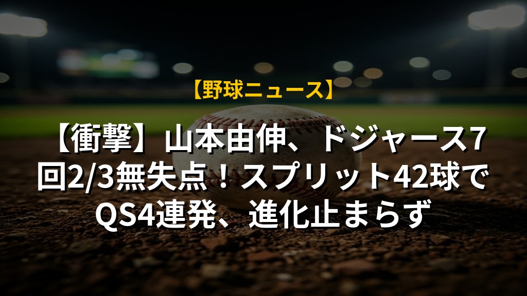 【衝撃】山本由伸、ドジャース7回2/3無失点!スプリット42球でQS4連発、進化止まらずの注目ポイントまとめ