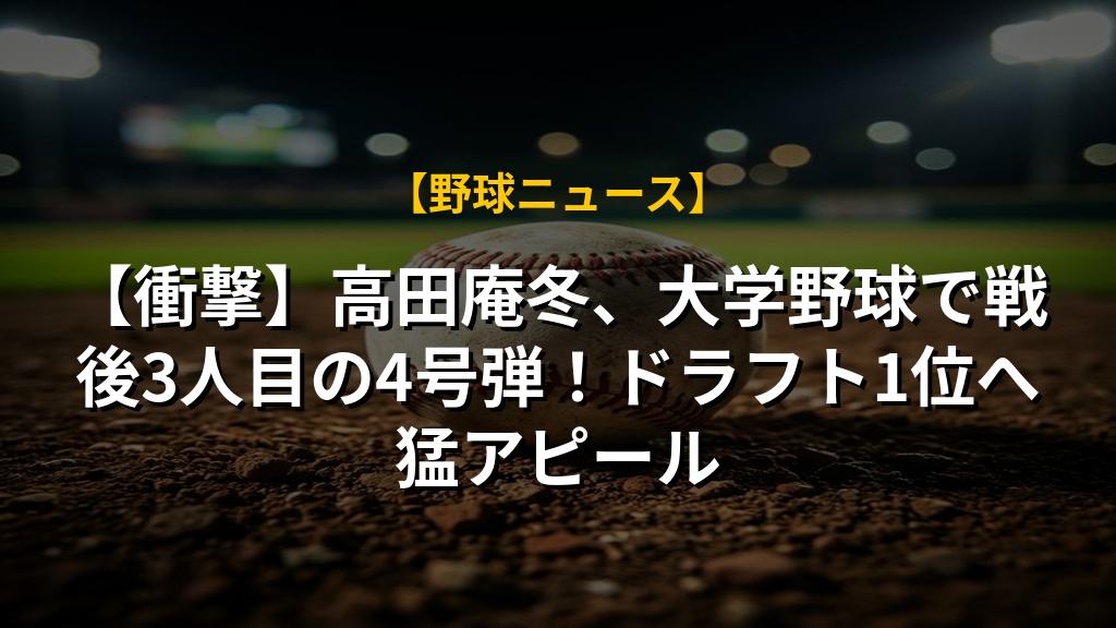 【衝撃】高田庵冬、大学野球で戦後3人目の4号弾!ドラフト1位へ猛アピール