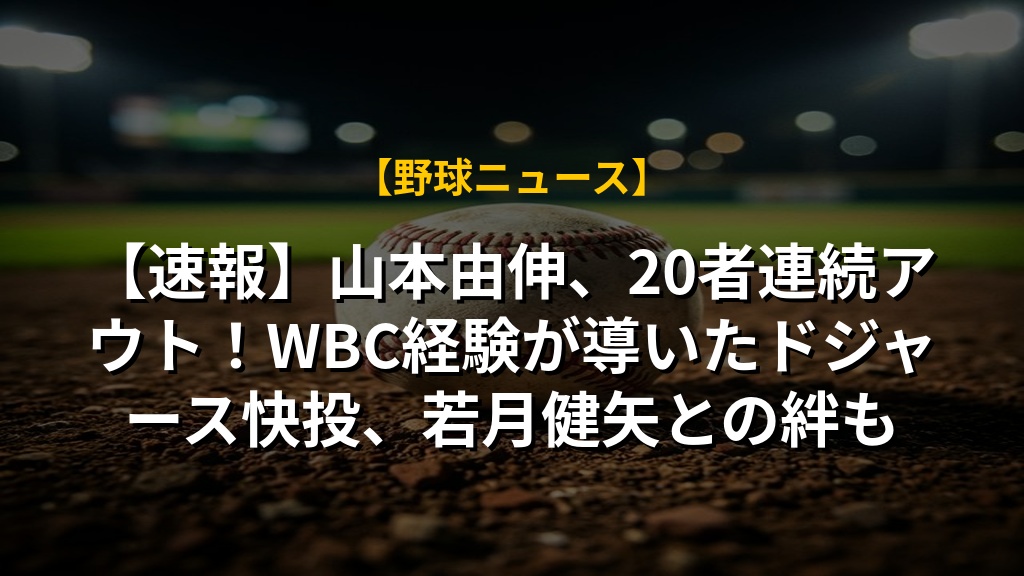 【速報】山本由伸、20者連続アウト!WBC経験が導いたドジャース快投、若月健矢との絆も