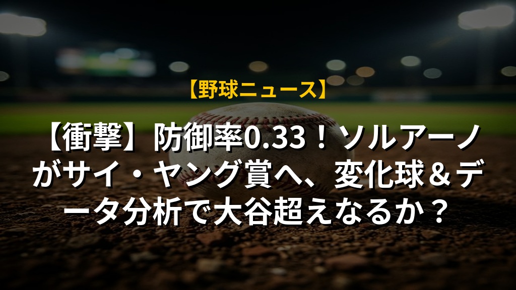 【衝撃】防御率0.33!ソルアーノがサイ・ヤング賞へ、変化球&データ分析で大谷超えなるか?の注目ポイントまとめ