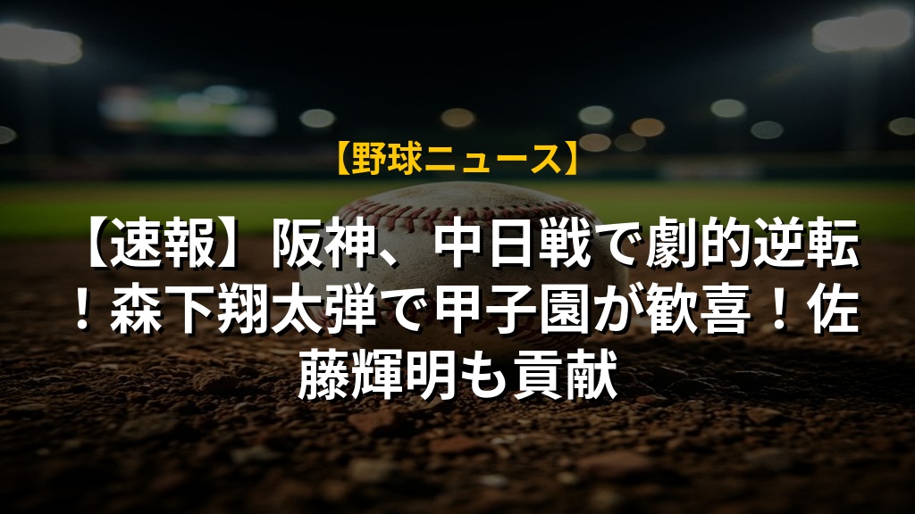 【速報】阪神、中日戦で劇的逆転!森下翔太弾で甲子園が歓喜!佐藤輝明も貢献