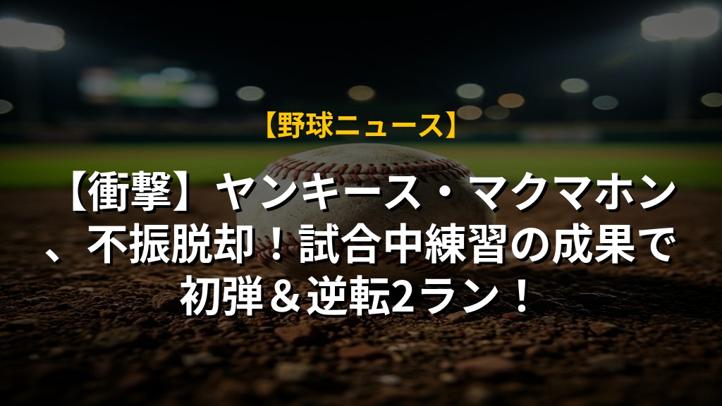 ヤンキースのマクマホン選手が、打撃不振を払拭する劇的な2ランホームランでチームを勝利に導きました。シーズン序盤は苦しみましたが、試合中の打撃練習を重ね、オフシーズンのフォーム改造が実を結びましたね。監督は左腕相手の起用は限られると話していますが、この一発で今後のチャンスが広がるかもしれません。努力が報われた姿に、私たちも勇気づけられます。今後の活躍に期待したいです。