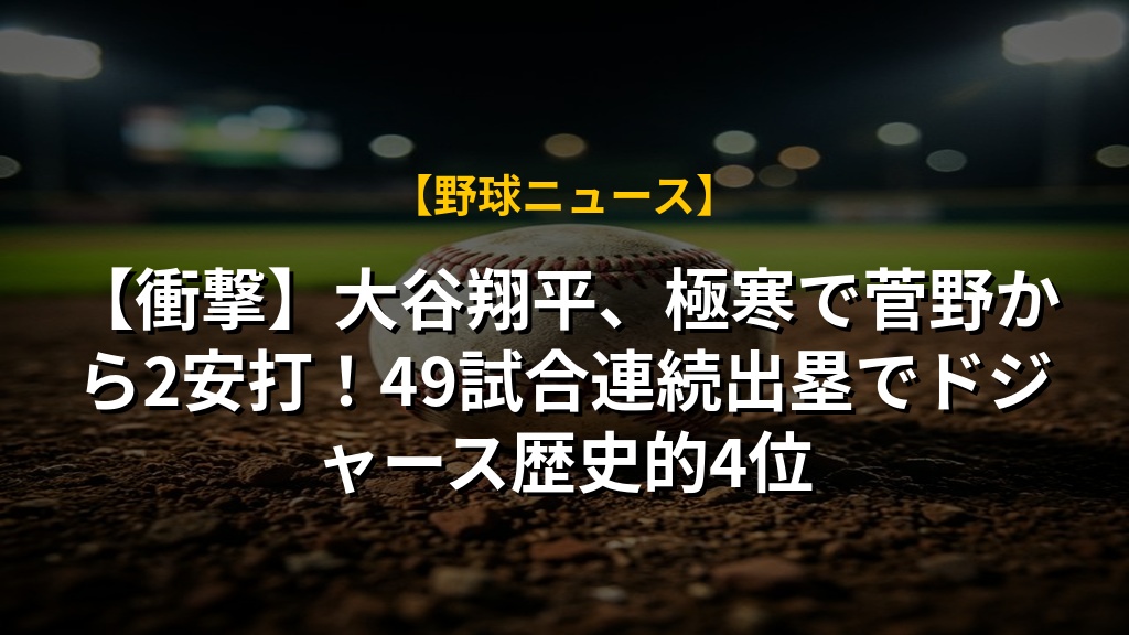 【衝撃】大谷翔平、極寒で菅野から2安打!49試合連続出塁でドジャース歴史的4位