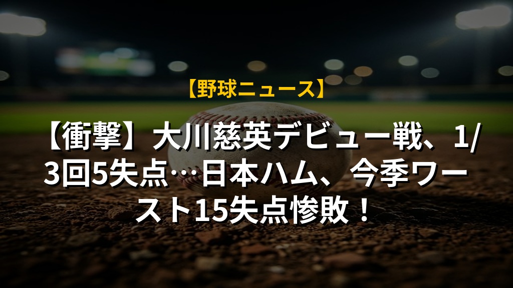 【衝撃】大川慈英デビュー戦、1/3回5失点…日本ハム、今季ワースト15失点惨敗!の注目ポイントまとめ