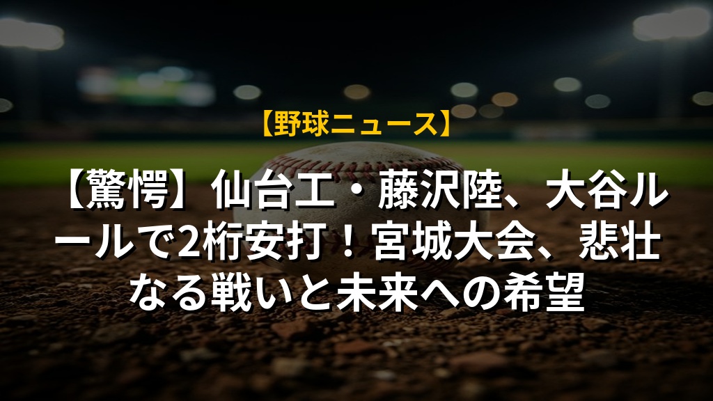 【驚愕】仙台工・藤沢陸、大谷ルールで2桁安打!宮城大会、悲壮なる戦いと未来への希望