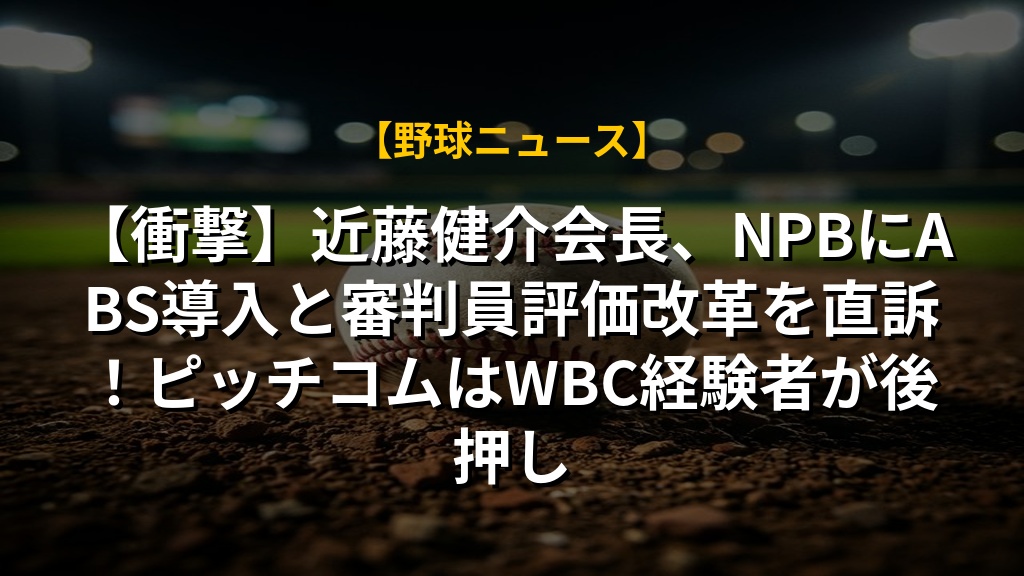 【衝撃】近藤健介会長、NPBにABS導入と審判員評価改革を直訴!ピッチコムはWBC経験者が後押し