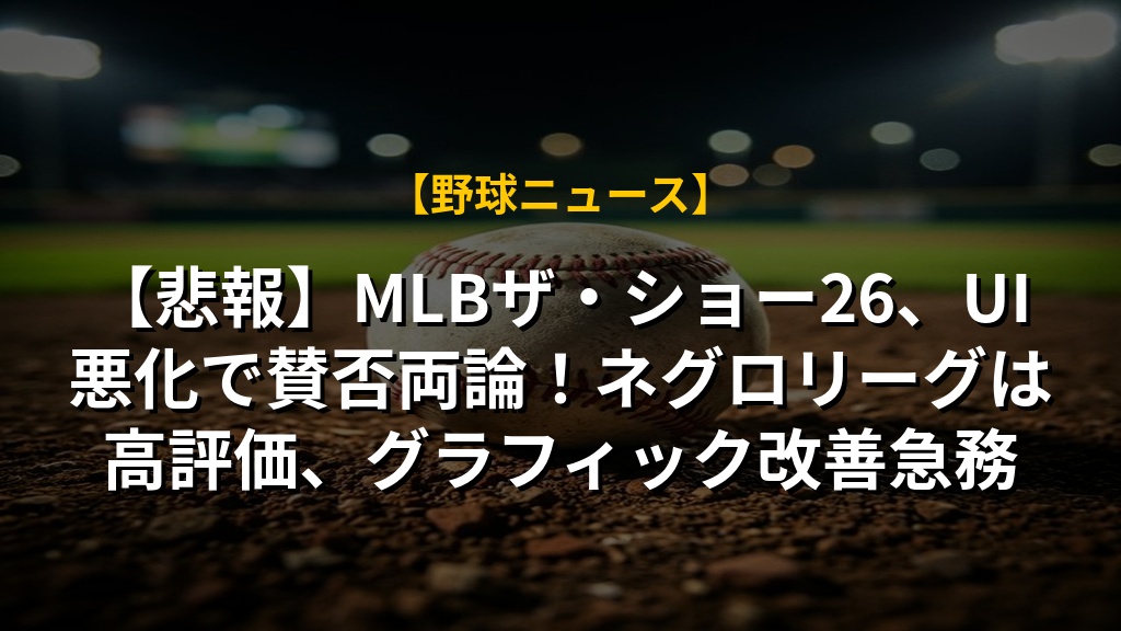 【悲報】MLBザ・ショー26、UI悪化で賛否両論!ネグロリーグは高評価、グラフィック改善急務の注目ポイントまとめ