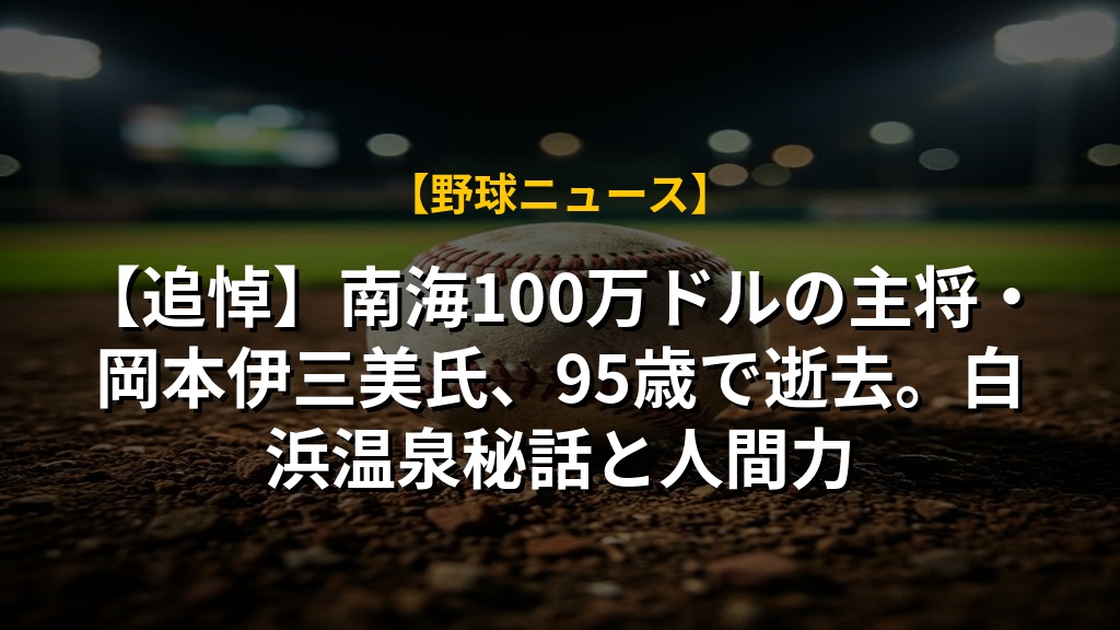 南海ホークスの黄金期を支え、日本一を経験した岡本伊三美さんが95歳で亡くなられました。南海の主将として、また近鉄の監督として、常にチームを勝利に導いてきた岡本さんの人柄は、多くの人に愛されていました。白浜温泉でのチームビルディングなど、破天荒ながらも選手を大切にする姿勢は、現代野球にも通じるものがあります。データ分析が重視される今だからこそ、岡本さんのような人間力を備えた指導者の存在が、より一層大切だと感じます。心よりご冥福をお祈りいたします。