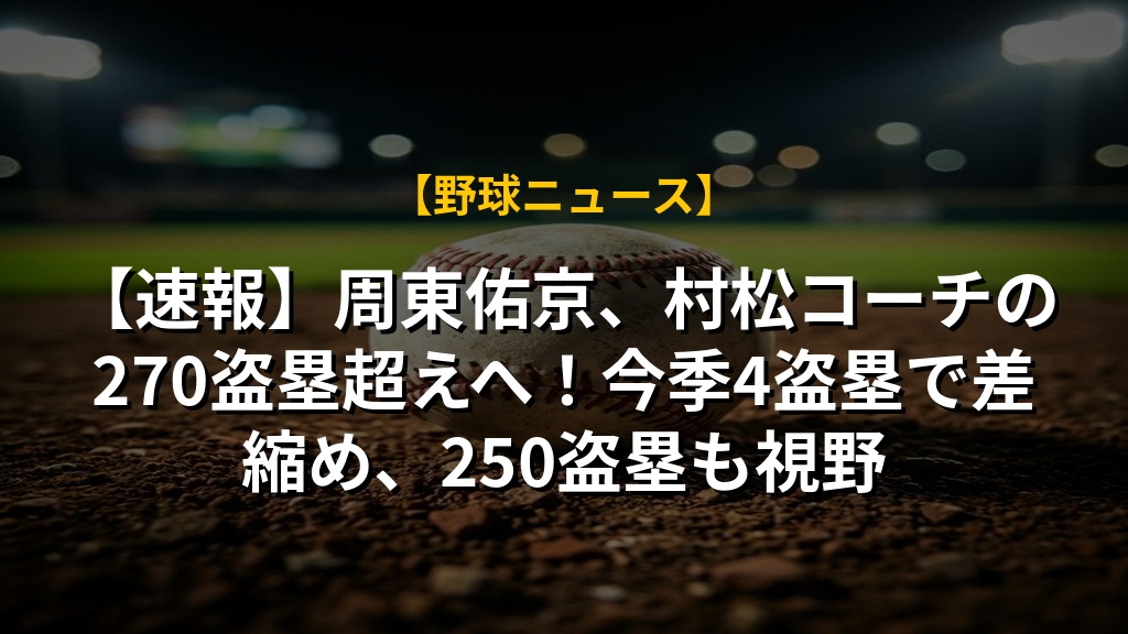 【速報】周東佑京、村松コーチの270盗塁超えへ!今季4盗塁で差縮め、250盗塁も視野の注目ポイントまとめ