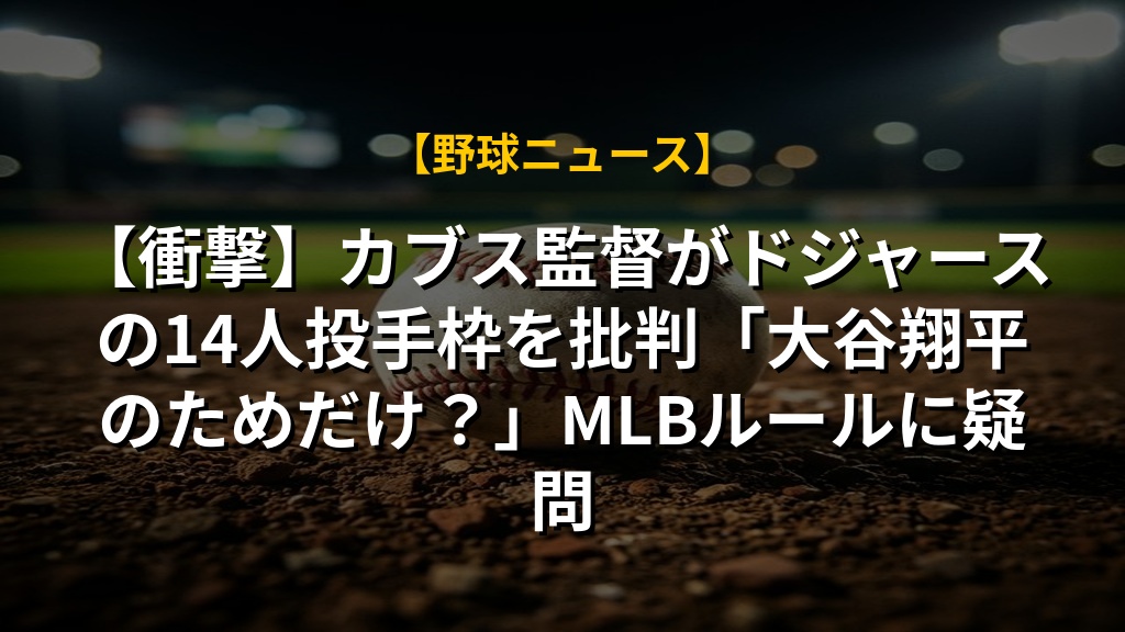 【衝撃】カブス監督がドジャースの14人投手枠を批判「大谷翔平のためだけ?」MLBルールに疑問の注目ポイントまとめ