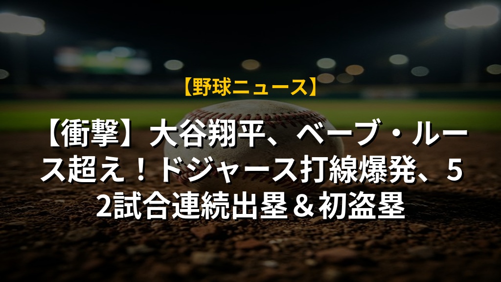 【衝撃】大谷翔平、ベーブ・ルース超え!ドジャース打線爆発、52試合連続出塁&初盗塁