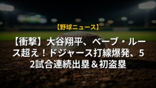 【衝撃】大谷翔平、ベーブ・ルース超え!52試合連続出塁でMLB新記録樹立!ドジャース打線も爆発