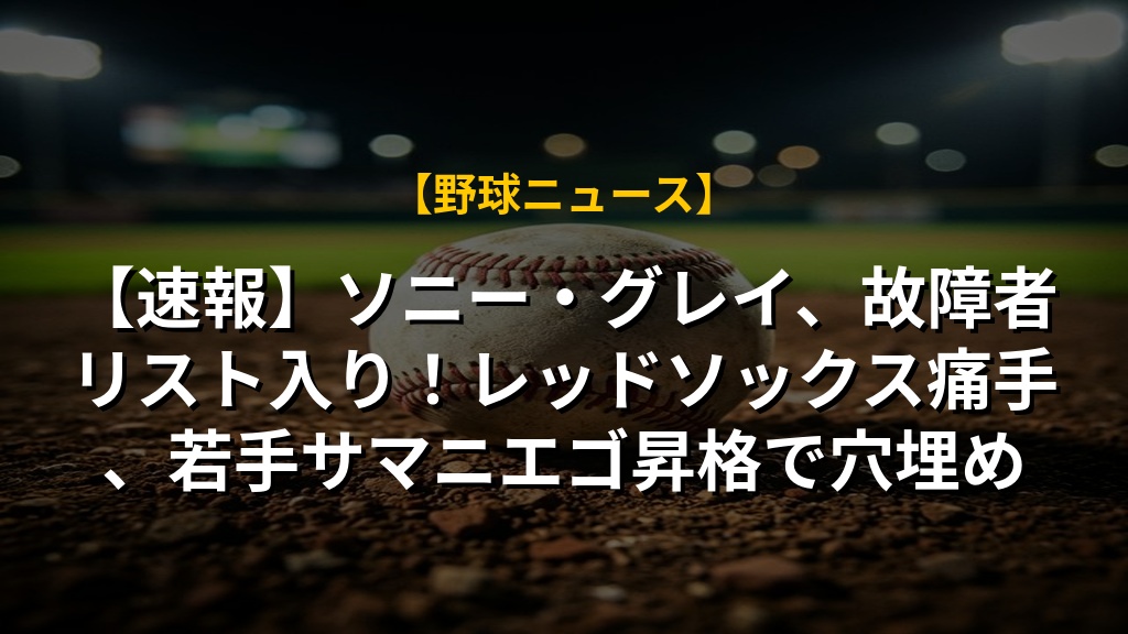レッドソックスのソニー・グレイ投手が右ハムストリングの張りで故障者リスト入りとなりました。序盤戦から苦戦しているチームにとって痛手ですが、若手サマニエゴ投手が昇格し、チャンスを掴むことになりました。グレイ投手の復帰が待たれますが、無理せず万全な状態で戻ってきてほしいですね。チーム全体の調子も心配ですが、サマニエゴ投手の活躍が明るいニュースになってくれることを願っています。