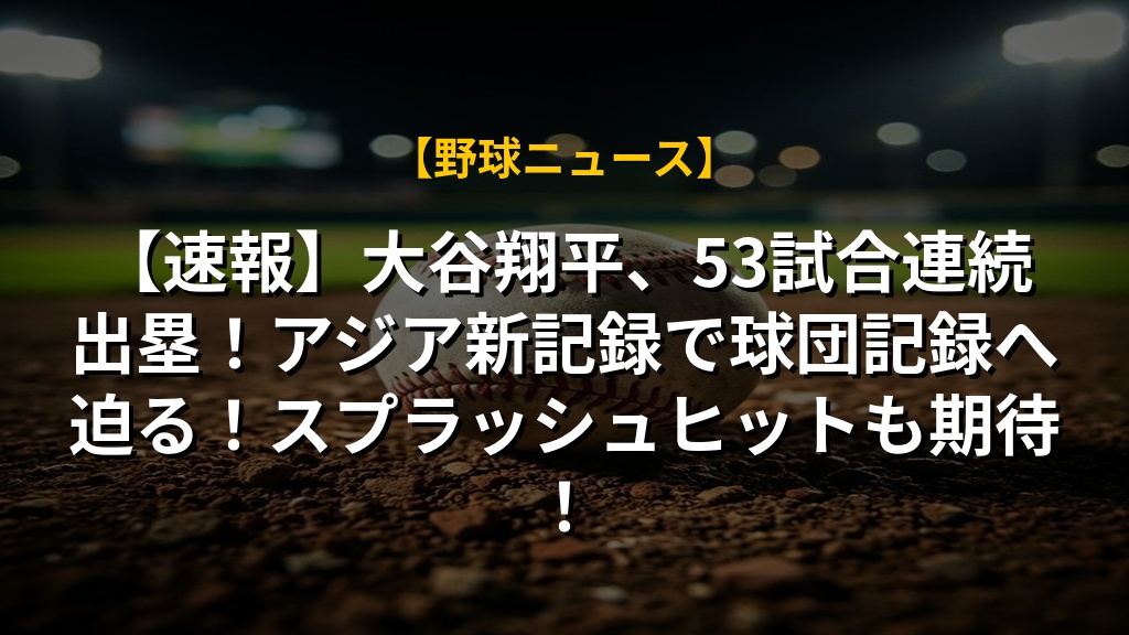 【速報】大谷翔平、53試合連続出塁!アジア新記録で球団記録へ迫る!スプラッシュヒットも期待!の注目ポイントまとめ
