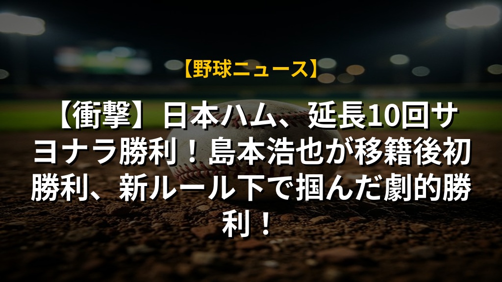 【衝撃】日本ハム、延長10回サヨナラ勝利!島本浩也が移籍後初勝利、新ルール下で掴んだ劇的勝利!