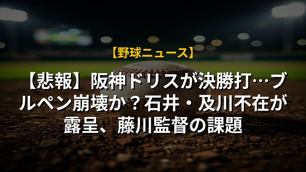 - 阪神ブルペン陣が苦戦。ドリスが決勝打を許し、リリーフ勢の負担増が課題となっている。