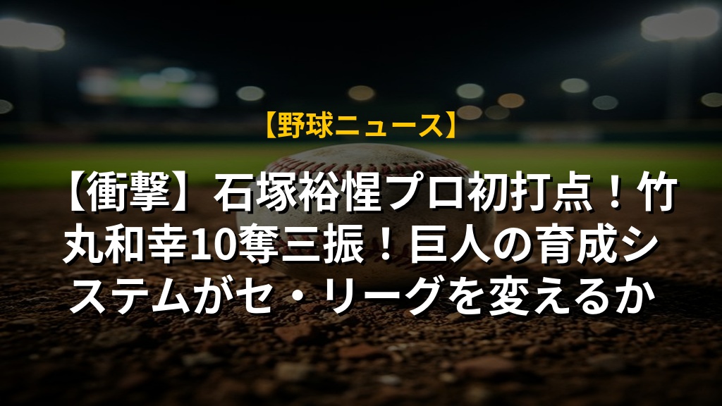【衝撃】石塚裕惺プロ初打点!竹丸和幸10奪三振!巨人の育成システムがセ・リーグを変えるかの注目ポイントまとめ